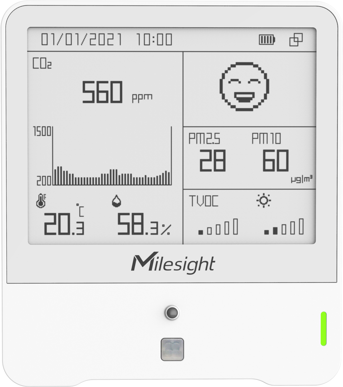 The Milesight AM30x Series (AM307, AM308, and AM308L) are advanced indoor ambience monitoring sensors designed to capture a comprehensive range of environmental parameters in real time. These compact lorawan® devices monitor temperature, humidity, CO₂, light, motion, barometric pressure, TVOC, PM2.5, and PM10, making them ideal for smart offices, schools, hospitals, retail spaces, and public buildings. With options for screen and screenless versions, the AM30x series supports both visual feedback and stealth deployments with long battery life and full compliance.